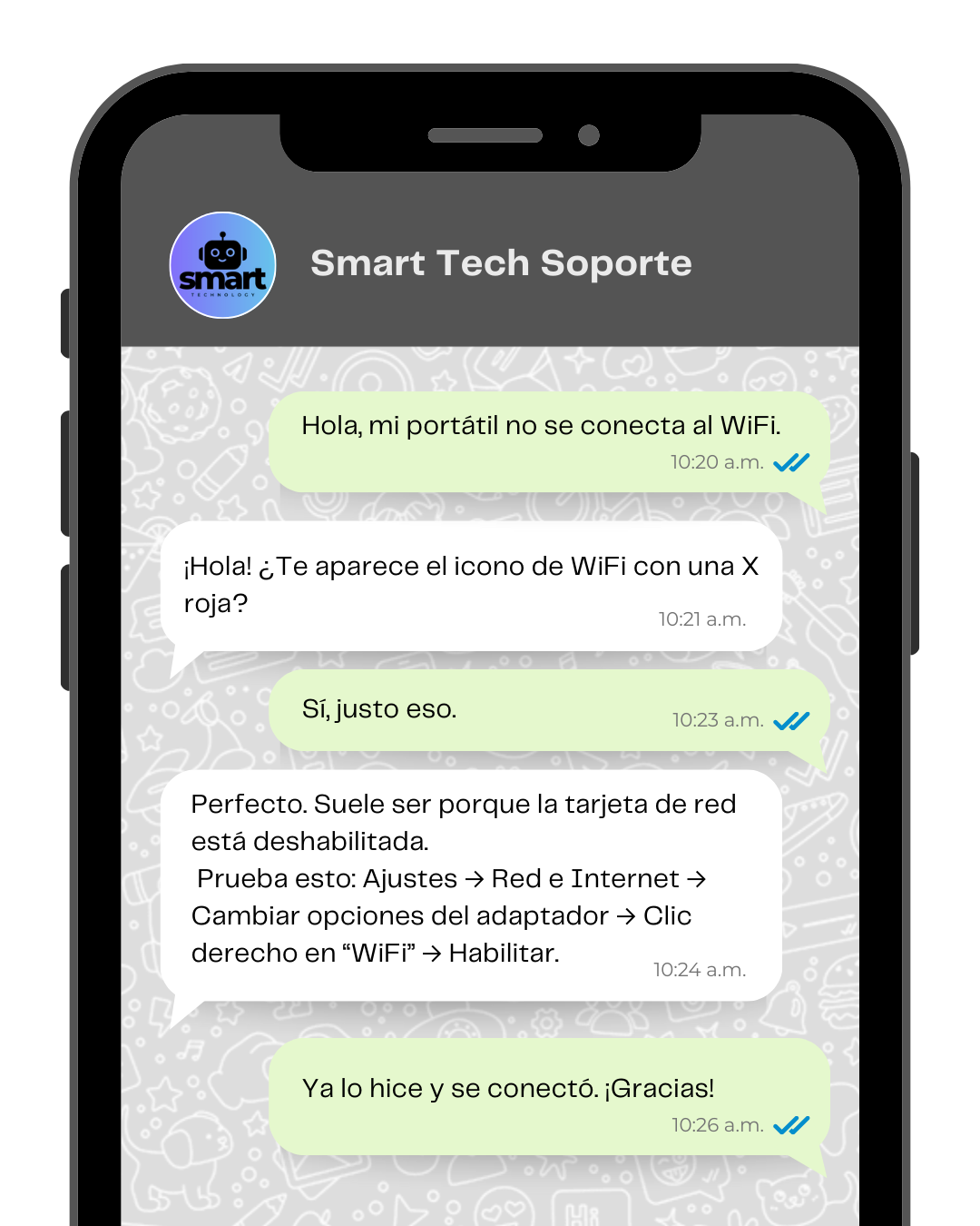 ¡No hay problema!. El chatbot atiende lo básico y te pasa solo los casos que necesitan atención humana.
