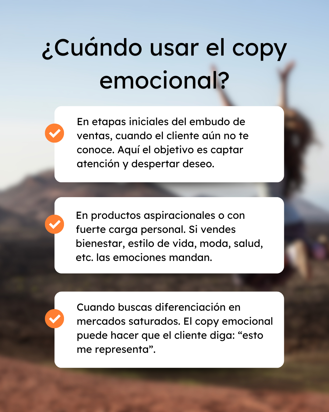 El copy emocional tiene el poder de conectar, enamorar y despertar deseo. Es el que mueve fibras, inspira y hace que alguien se detenga a leer. Pero si solo usas emoción sin ningún dato que respalde lo que dices, corres el riesgo de parecer poco serio o de no generar la confianza suficiente para cerrar una venta.